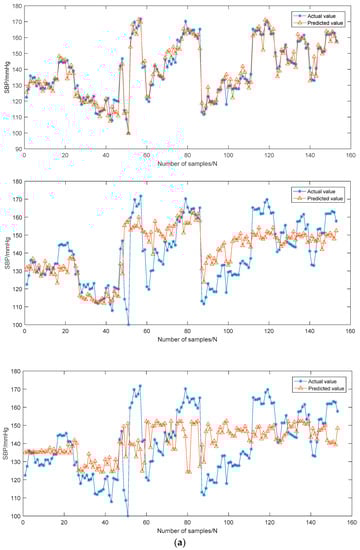 The feature selection in this study still had some limitations. In the data collection stage, bounded by the database, the individual’s personal information could not be retrieved as features. It was expected that the addition of some personal characteristics, such as height, weight, age, and gender, might further strengthen the predictive ability of the models. In a previous study [], the body mass index, waist circumference, hip circumference, and waist-to-hip ratio were introduced to predict the increase in BP. In a previous study [], the BP neural network was constructed based on the height, weight, age, gender, and other characteristics for BP estimation. Furthermore, the introduction of personal features might possibly eliminate the cumbersome calibration process.