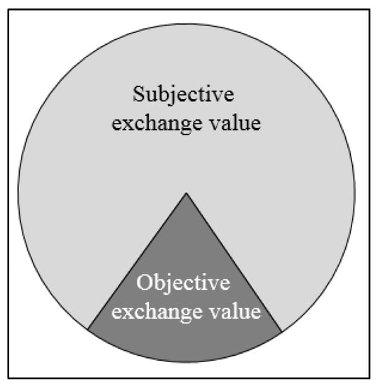 The objective and subjective part of the realized exchange value in science. Source: own illustration. Please note: the different sizes of the two fields illustrate the result from our study that scientists tend to receive a higher subjective than objective exchange value from disseminating their research. The fraction of the subjective versus objective value, however, does not indicate a specific ratio.