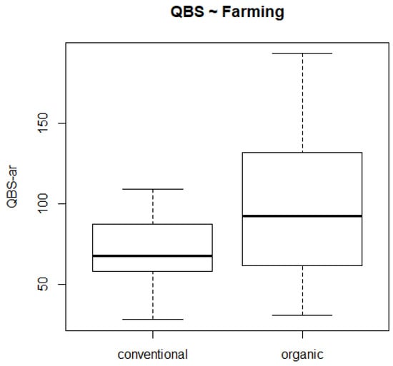 Boxplot of QBS-ar distribution according to farming system.