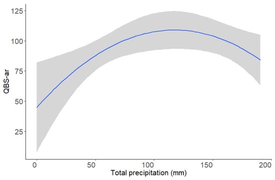 - Total cumulative precipitation (Prec_t) was positive related to QBS-ar, i.e., an increase in total precipitation increased the estimated QBS-ar value.