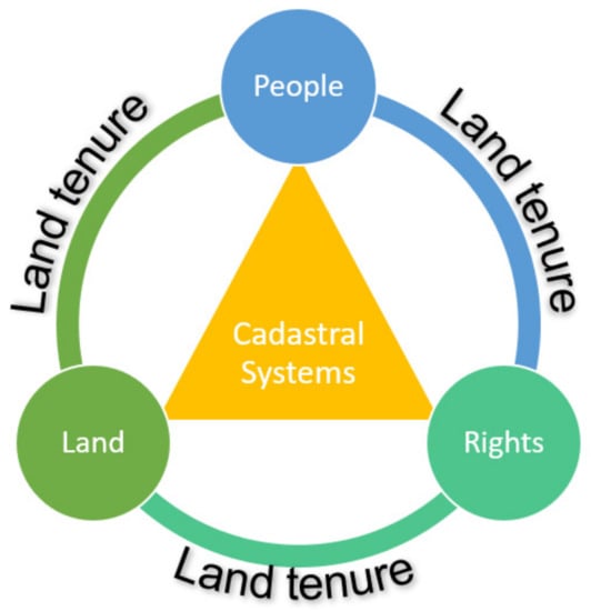 Adams, Sibanda and Turner ([], p. 2) succinctly define land tenure as “the terms and conditions on which land is held, used and transacted”. The Food and Agriculture Organisation of the United Nations ([], p. 7) defines land tenure as “the relationship, whether legally or customarily defined, among people, as individuals or groups, with respect to land”. The legal approach recognises the de jure (formal, statutory) identification of land tenure (how the land is held) and associated rights (what the holder may do with the land). Enemark [] takes the legal approach, defining land tenure as the allocation and security of land rights through legal cadastral surveying, land transfers, and the management of boundary disputes. The customary approach focuses more on the de facto (informal, extra-legal) situation, constituting the communally accepted rules defining access to land along with land use rights and interests []. These rules reflect the social relationships that order customary society and the balance of power among stakeholders. Changes to these rules may result in a fundamental shift in existing power structures and social relationships.