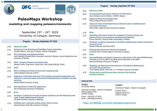 The workshop was set out as a two half-days event, compare the program (Figure 1), or the workshop website (https://crc806db.uni-koeln.de/paleomaps/intro/), which remains online including all abstracts for documentation.