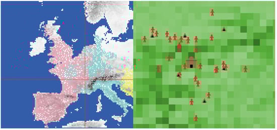 - Hölzchen, E.; Hertler, C.; Timm, I.; Lorig, F. Evaluation of Out of Africa hypotheses by means of agent-based modeling. Quat. Int. 2016, 413, 78–90. [Google Scholar] [CrossRef]