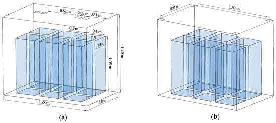 where Ai is the total heat transfer area of container, Ai1 and Ai2 are the geometric heat transfer area inside and outside the container respectively. Considering the influence of the thermal bridge and sealing on the total heat transfer coefficient, it is necessary to modify the total heat transfer coefficient of the container []. The correction factor for this article is 1.15, provided by the container manufacturer. The applicable thermal properties of air were obtained from FLUENT (2003).