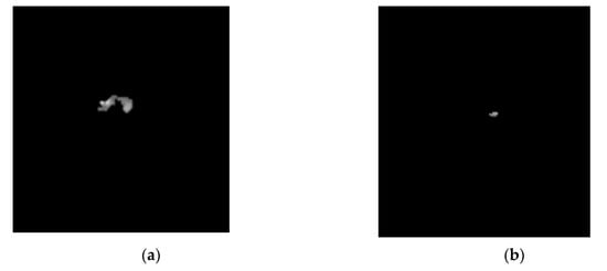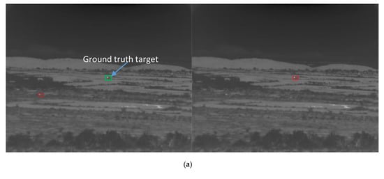 There are two groups of target detection algorithms for videos. One group is to utilize supervised learning algorithms. For instance, there are some conventional target tracking methods [,]. In addition, some target detection and classification schemes using deep learning algorithms such as You Only Look Once (YOLO) for larger objects in short-range optical and infrared videos have been proposed in the literature [,,,,,,,,,,,,,,,,,,]. There are also some recent papers on moving target detection in thermal imagers [,,]. Training videos are required in these algorithms. Although the performance is reasonable for short ranges up to 2000 m in some videos, the performance dropped quite considerably in long ranges where the target sizes are so small. This is because YOLO uses texture information to help the detection. Moreover, the object sizes need to be large enough in order to have textures. The use of YOLO is not very effective for long-range videos in which the targets are too small to have any discernible textures. Some recent algorithms [,,,,,,,,,,] incorporated compressive measurements directly for detection and classification. Real-time issues have been discussed in [].