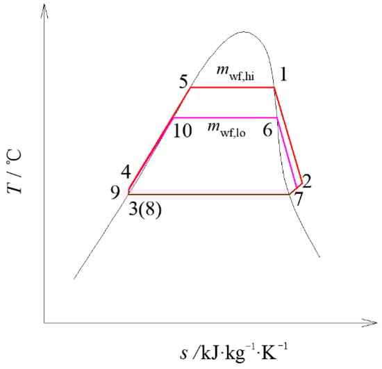 Temperature–entropy (T–s) diagram of the two-stage ORC system.