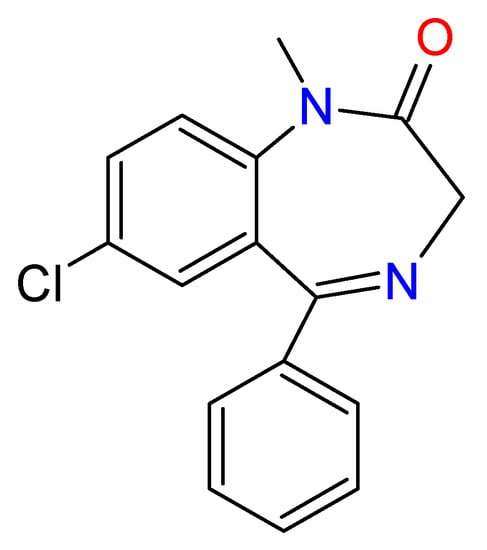 - Calcaterra, N.; Barrow, J. Classics in chemical neuroscience: Diazepam (Valium). ACS Chem. Neurosci. 2014, 5, 253–260. [Google Scholar] [CrossRef]