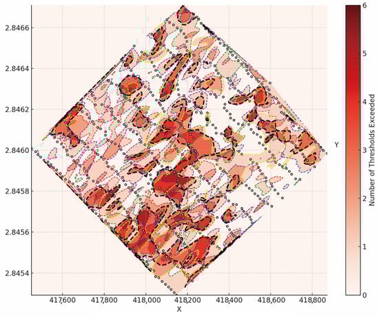The Shizhuyuan polymetallic deposit in Hunan Province, China, is a world-class ore field rich in tungsten (W), tin (Sn), molybdenum (Mo), and bismuth (Bi), now facing resource depletion due to prolonged exploitation. This study addresses the limitations of traditional geological prediction methods in complex terrain by integrating multi-source datasets—including γ-ray spectrometry, high-precision magnetometry, induced polarization (IP), and soil radon measurements—across 5049 samples. Unsupervised factor analysis was employed to extract five key ore-indicating factors, explaining 82.78% of data variance. Based on these geological features, predictive models including Support Vector Machine (SVM), Random Forest (RF), and Extreme Gradient Boosting (XGBoost) were constructed and compared. SHAP values were employed to quantify the contribution of each geological feature to the prediction outcomes, thereby transforming the machine learning “black-box models” into an interpretable geological decision-making basis. The results demonstrate that machine learning, particularly when integrated with multi-source data, provides a powerful and interpretable approach for deep mineral prospectivity mapping in concealed terrains.