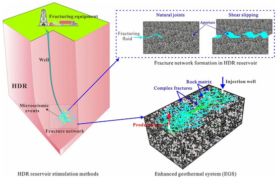 Enhanced geothermal systems (EGS) are a key technology for developing deep geothermal resources, yet they face significant challenges in constructing efficient thermal reservoirs within high-stress, high-strength, and low-permeability crystalline rock formations. Traditional hydraulic fracturing (HF) techniques encounter deep challenges in these environments, including [...] Read more.