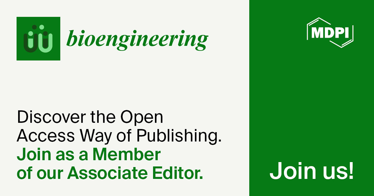 If you are interested in this position, please do not hesitate to contact the Bioengineering Editorial Office at bioengineering@mdpi.com or the Editor-in-Chief, Prof. Dr. Anthony Guiseppi-Elie, at guiseppi@aiimsei.org. You can find the journal’s aims and scope on our homepage: https://www.mdpi.com/journal/bioengineering/about. For more information about the Editorial Board team, please see the following link: https://www.mdpi.com/journal/bioengineering/editors.