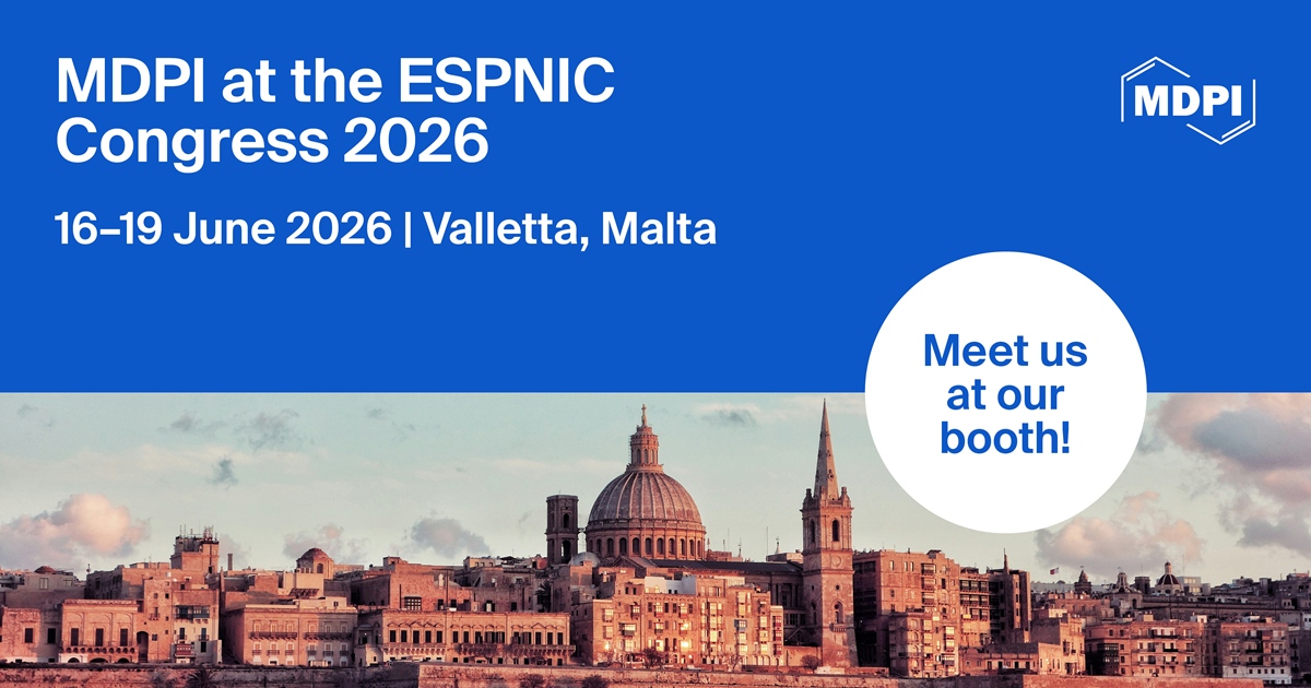 MDPI will be attending the 35th International Congress of the European Society of Paediatric and Neonatal Intensive Care, which will be held from 16 June to 19 June 2026, as an exhibitor. We welcome researchers from various backgrounds to visit our booth and share their latest ideas with us.