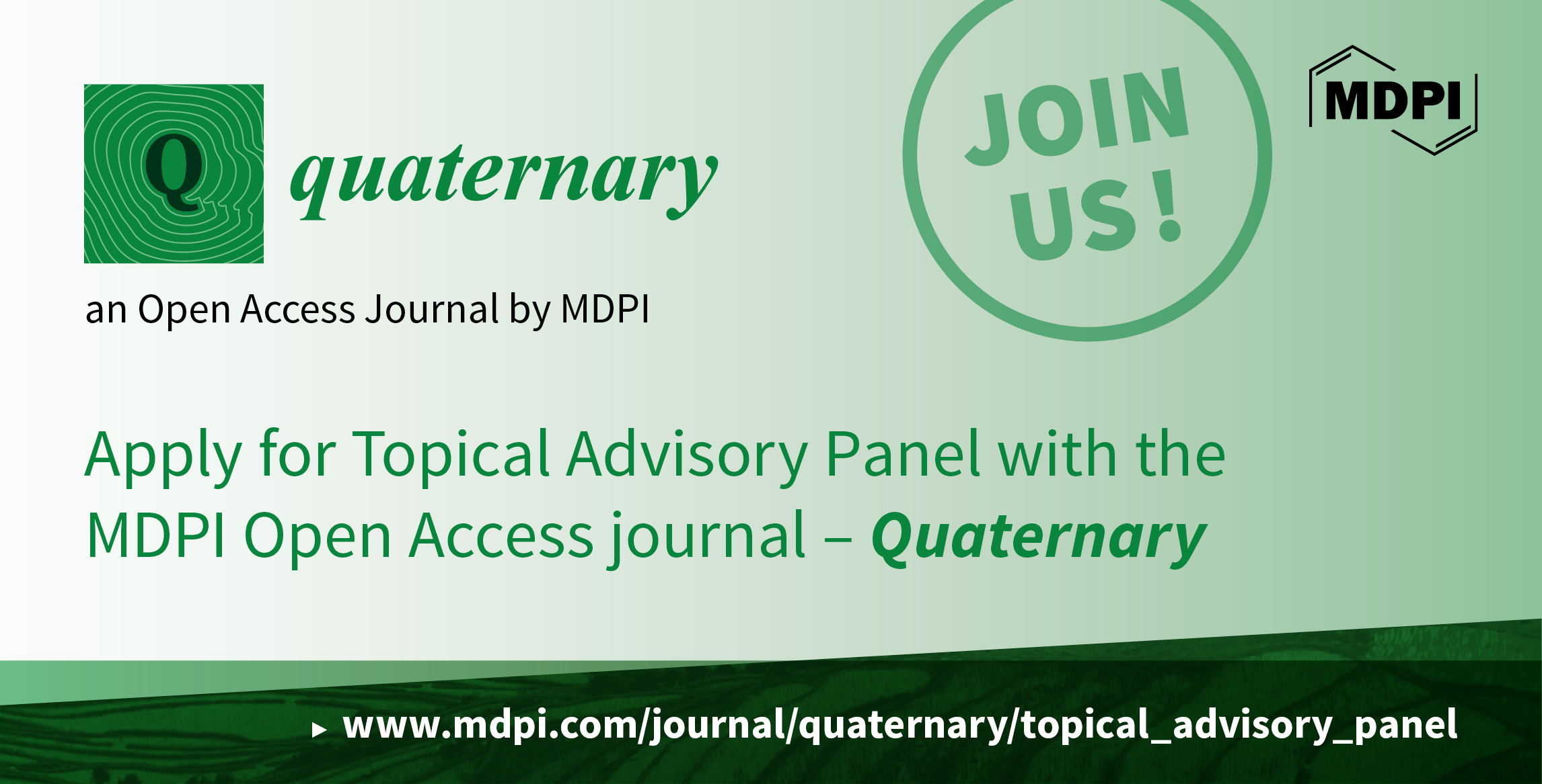 We are currently recruiting Topical Advisory Panel Members for Quaternary (https://www.mdpi.com/journal/quaternary/topical_advisory_panel).