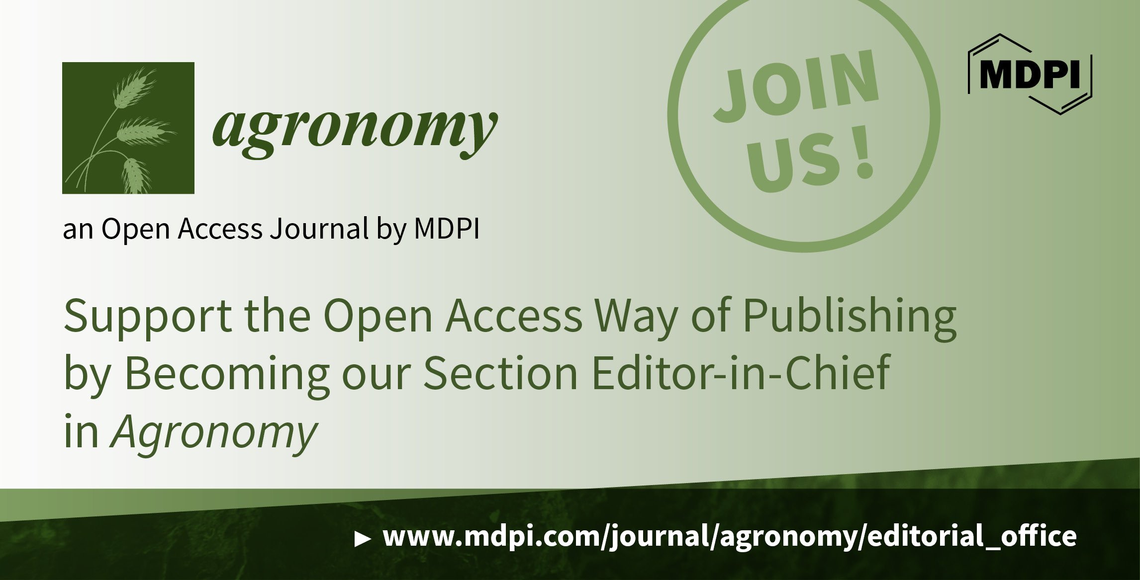 We are now recruiting Section Editors-in-Chief (SEiC) for these Sections. If you are an active researcher in one of the aforementioned fields and are passionate about publishing cutting-edge research, please do not hesitate to contact us at: agronomy@mdpi.com. You can find more information on our homepage: https://www.mdpi.com/journal/agronomy.