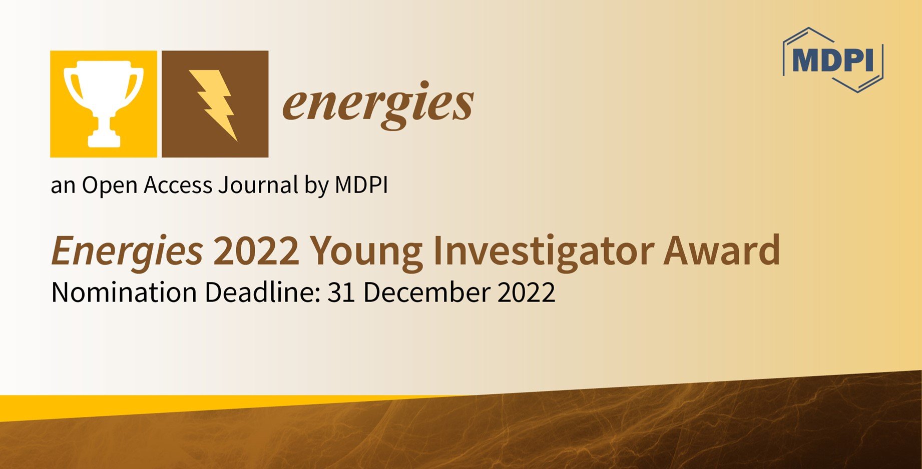 Energies is currently accepting nominations for the Energies 2022 Young Investigator Award. This prize will be awarded to one young investigator in recognition of their excellence in the field of energy.