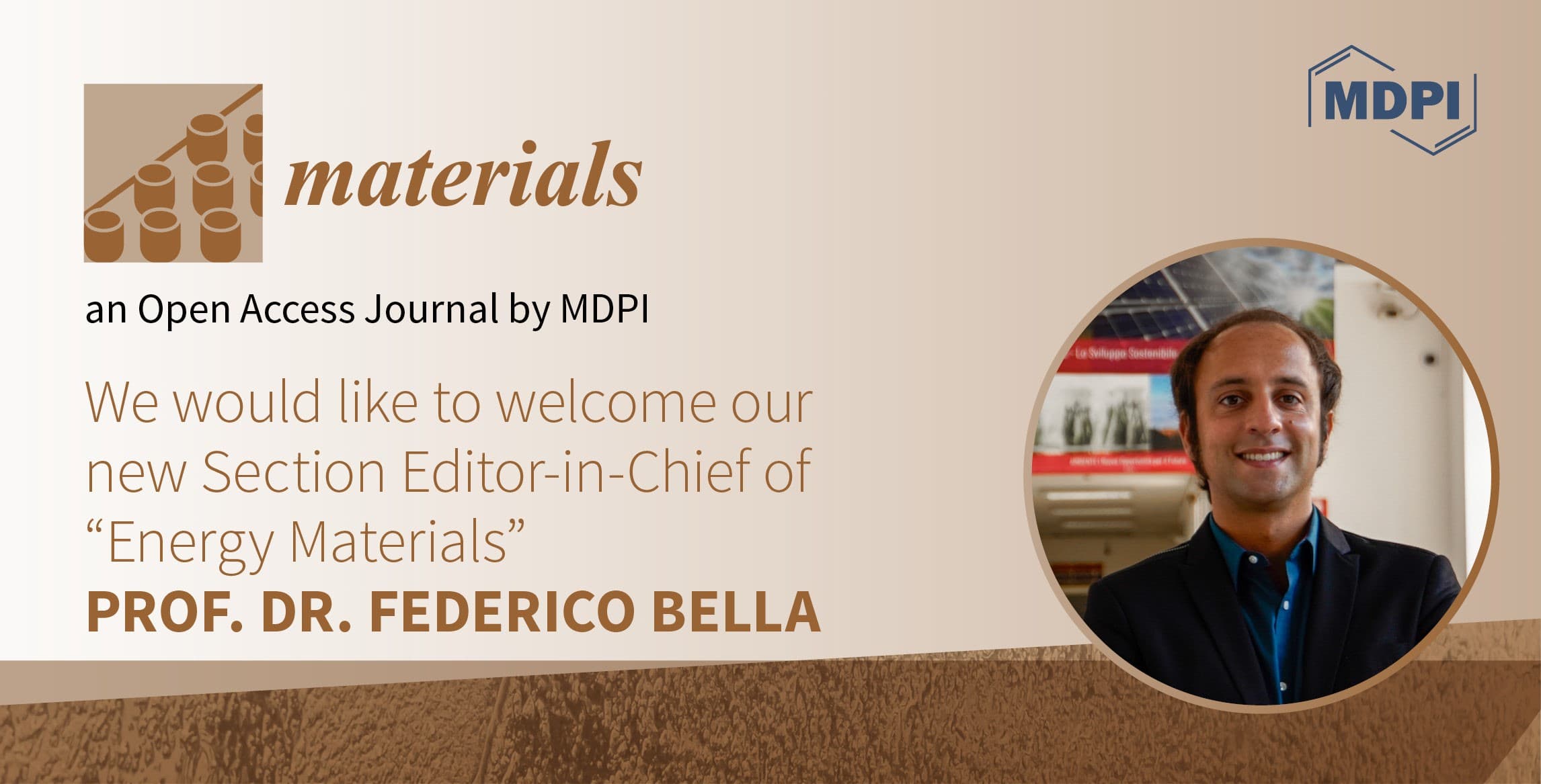 We are pleased to announce that Prof. Dr. Federico Bella has been appointed Editor-in-Chief of the Section "Energy Materials" in Materials (ISSN: 1996-1944).