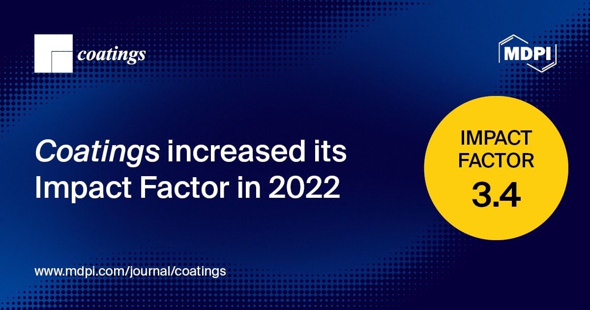 We are pleased to inform you that Coatings’ 2022 Impact Factor is 3.4. Our journal continues to help advance the science and engineering of coatings, thin and thick films, surfaces and interfaces.