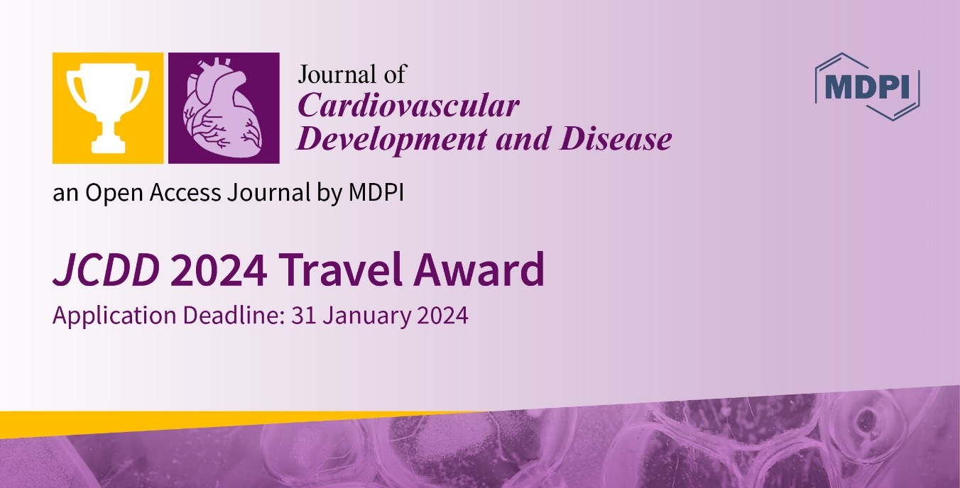 We are pleased to announce that the Journal of Cardiovascular Development and Disease (JCDD, ISSN: 2308-3425) will be granting the Travel Award to two junior scientists. The applications will be assessed by an Evaluation Committee consisting of senior scholars from the JCDD Editorial Board.