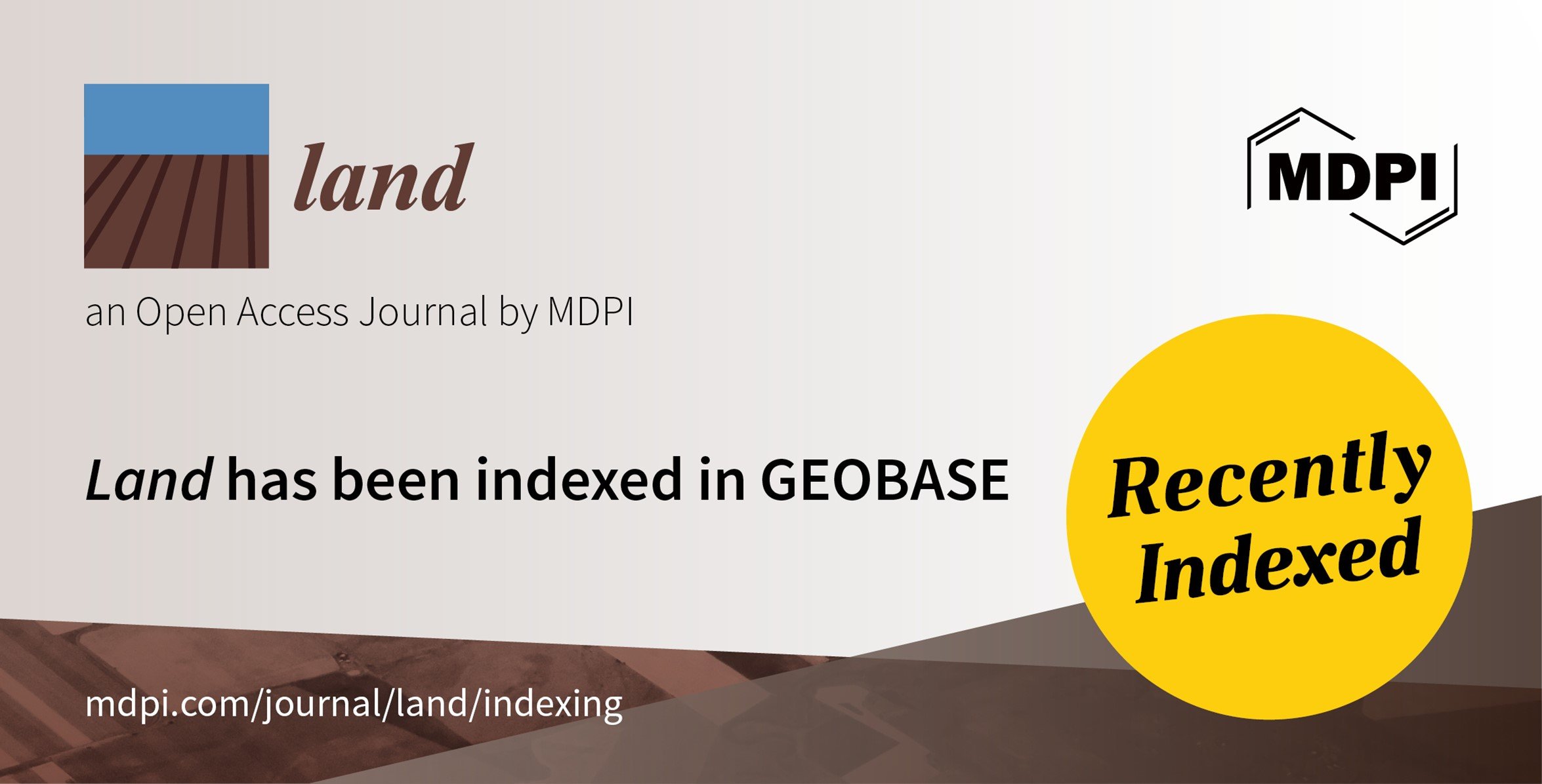 We are pleased to inform you that the open access journal Land (ISSN: 2073-445X, IF: 3.9) has been indexed in GEOBASE. We would like to extend our sincerest gratitude to all authors, reviewers, and editors who have contributed to this journal and enabled this achievement.