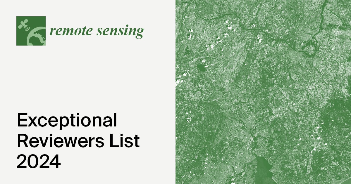 We are thrilled to share the updated Remote Sensing Exceptional Reviewers List 2024. This program was designed to recognize and honor scholars who have consistently delivered exceptional review reports to our journal. Committed to fostering rigorous research and promoting knowledge exchange, Remote Sensing (ISSN: 2072-4292) recognizes the significant role that our reviewers play in maintaining the quality and integrity of the articles we publish. According to surveys conducted in 2023, 91% of our authors rate the peer review as good or excellent, thanks to our pool of excellent reviewers.