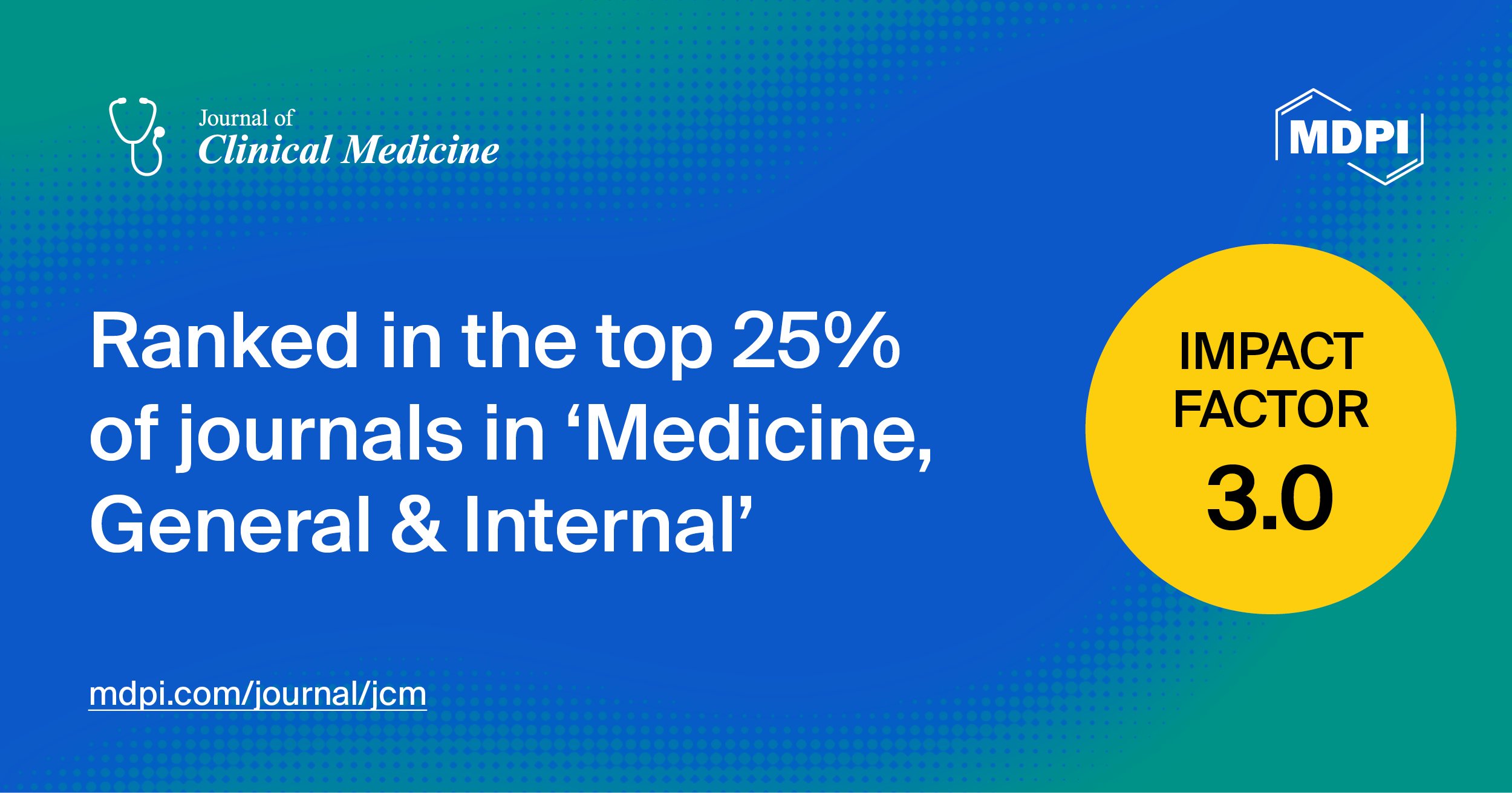 We are pleased to share that Journal of Clinical Medicine (JCM, ISSN: 2077-0383,) was awarded an updated Impact Factor of 3.0 in the 2023 Journal Citation Reports™ released by Clarivate in June 2024. JCM ranks Q1 (58 among 325 titles) in the “Medicine, General & Internal” category.