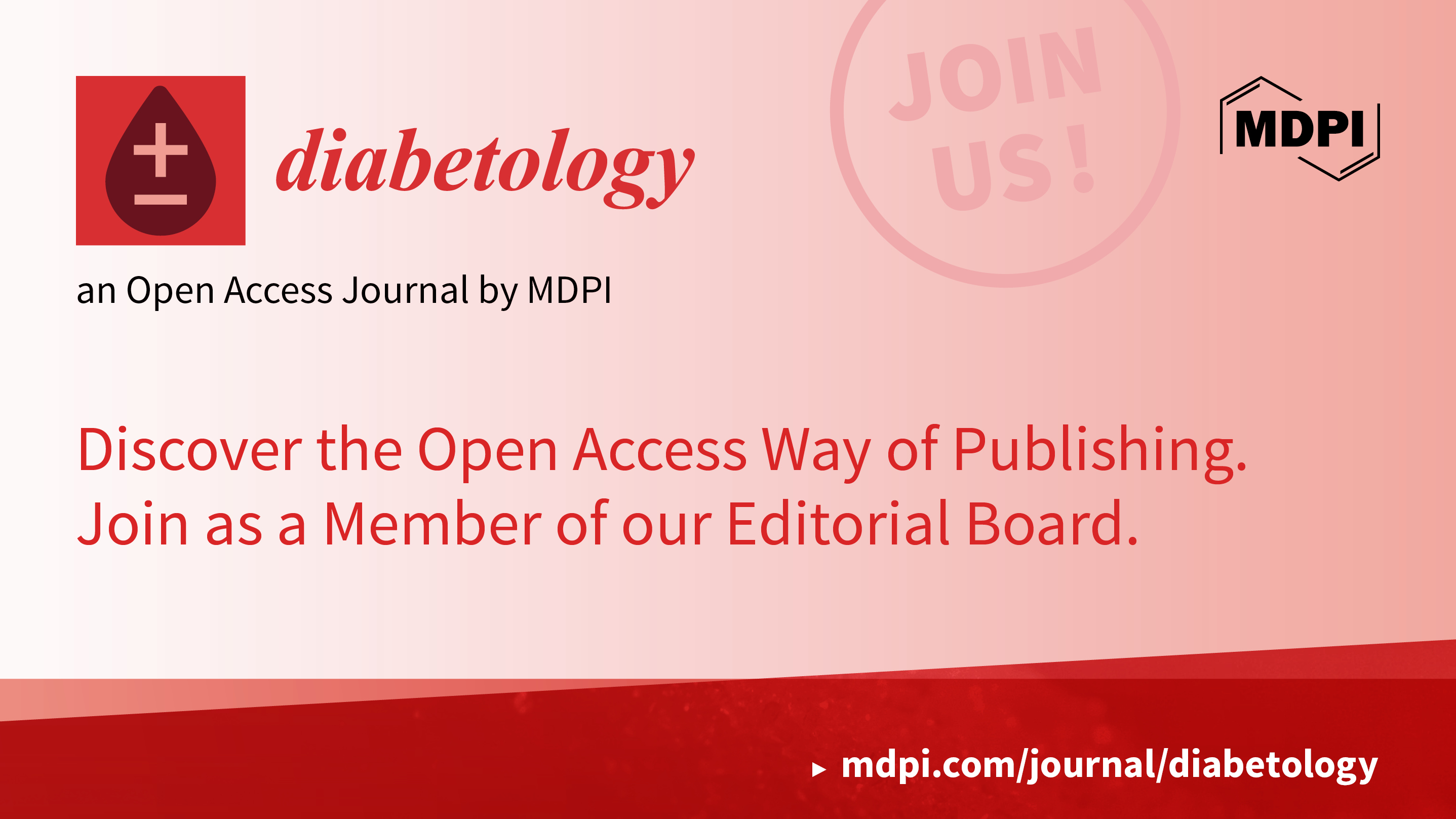 If you are interested in becoming an Editorial Board Member or have potential candidates to recommend, please contact the Diabetology Editorial Office. We look forward to working with you in the future.