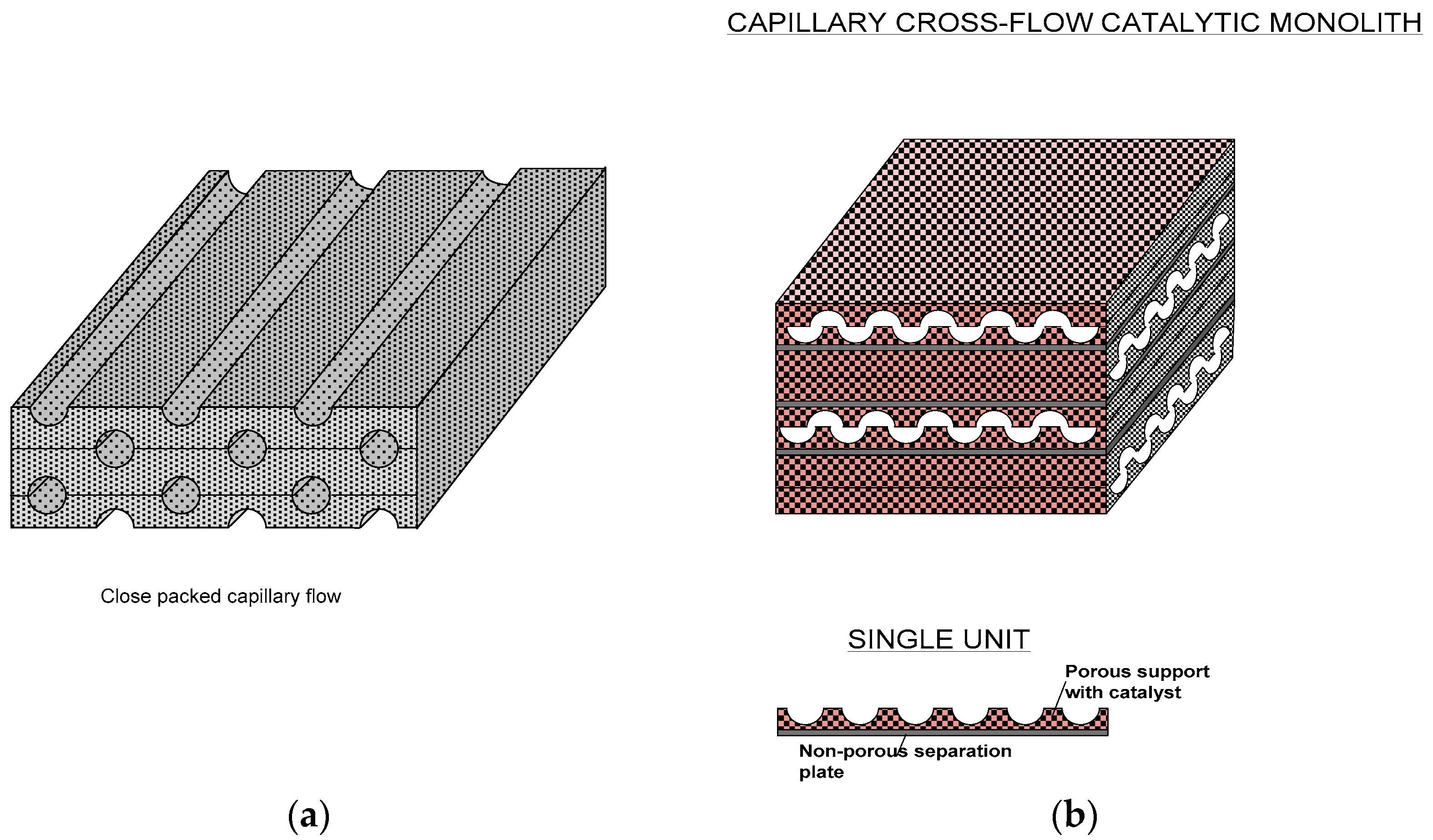 The walls of commercially available monoliths (such as Retimet ®) [13] can be catalyzed and used as catalytic reactors. This is achieved by wash coating of the walls followed by catalyst reduction. Large pores (or channels) provide convective mass transfer while the surface coated catalyst provides the catalytic transformation. However, in these systems, catalyst loading is low and is liable to erosion and the interfacial area for mass transfer is low.