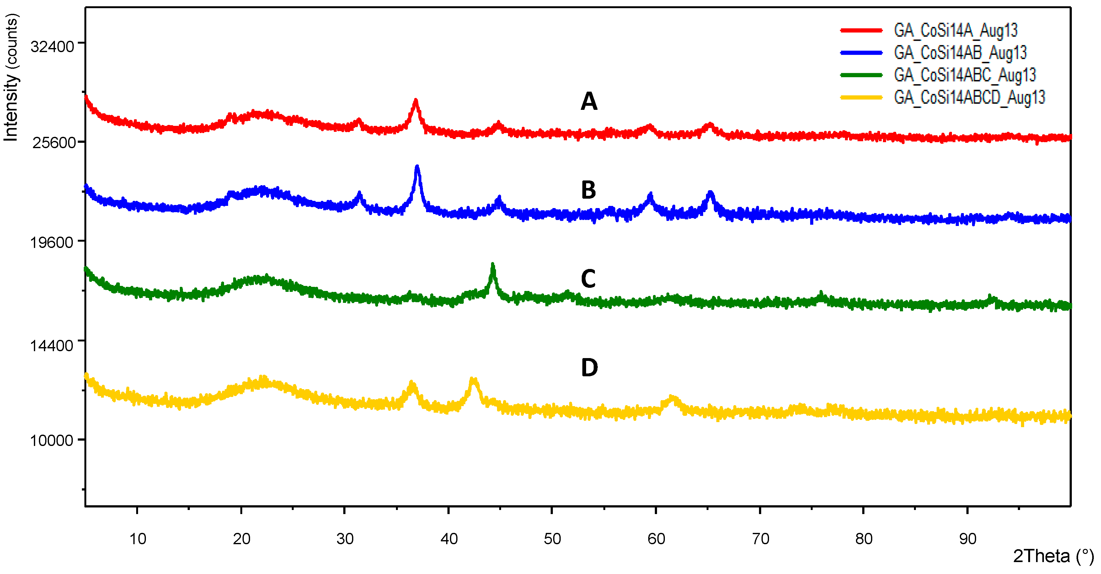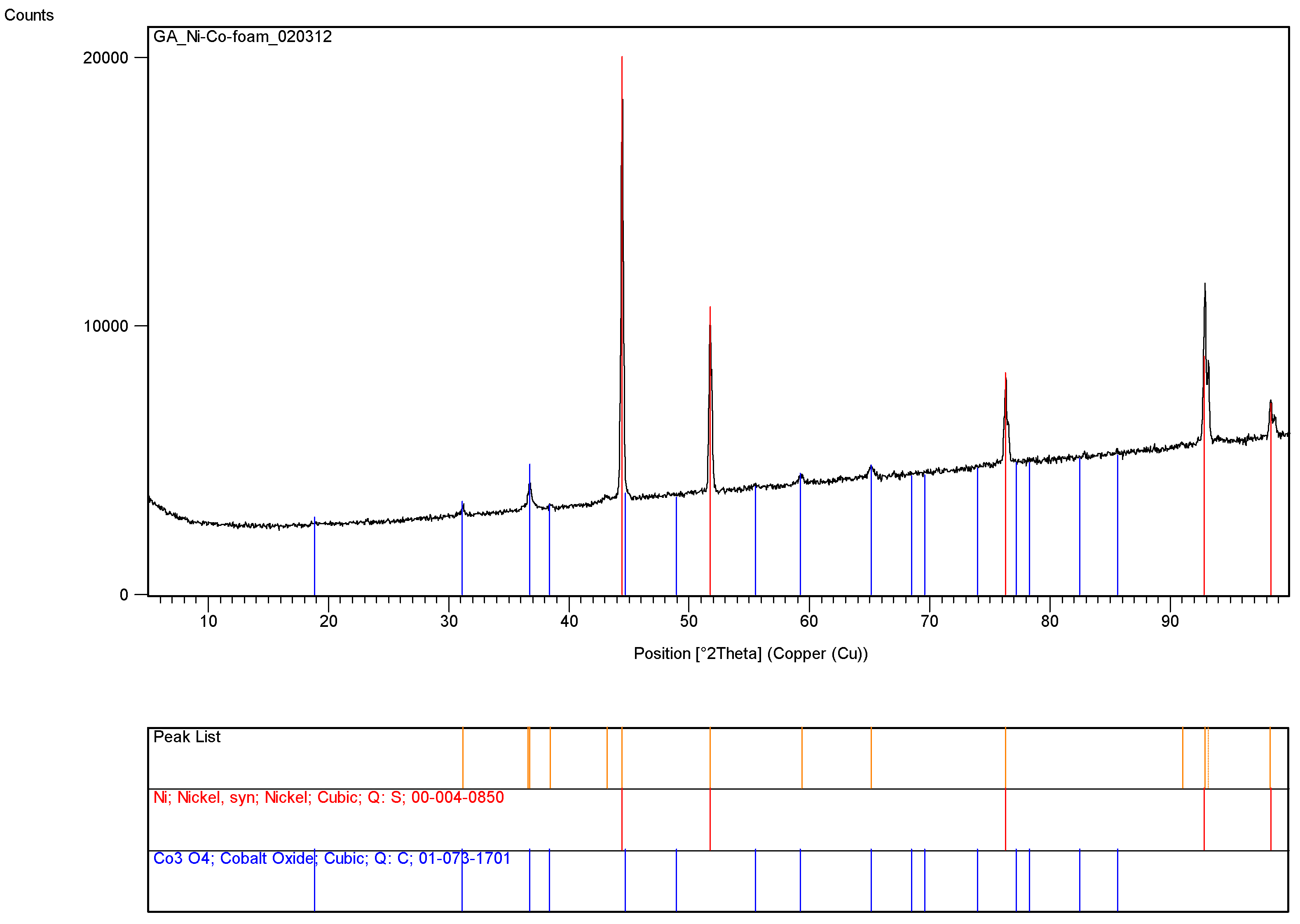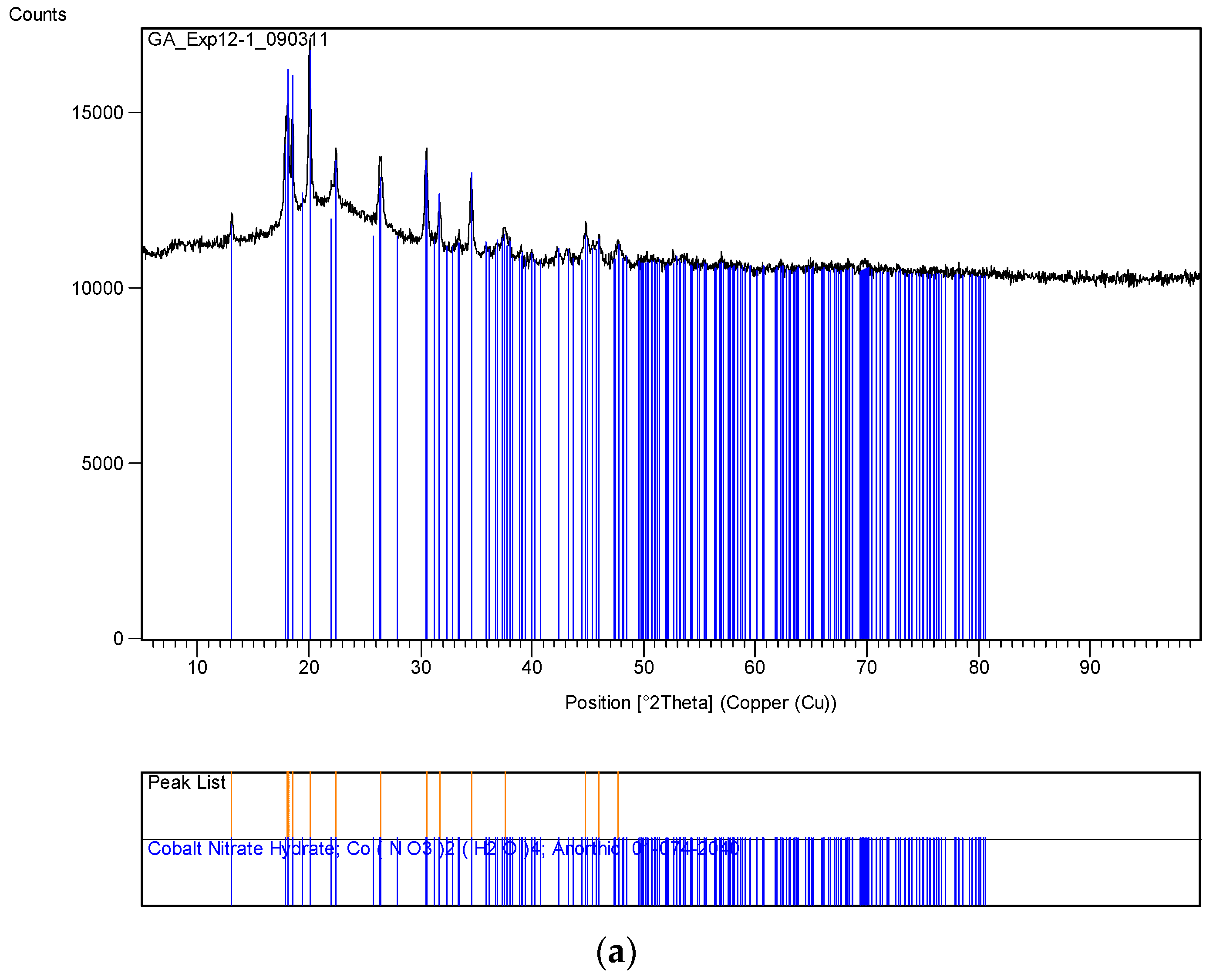 100 mL of 1 M cobalt nitrate solution was added sufficient amount of uncoated colloidal silica particles (Aerosil AE 380) so as to obtain a paste so that the molar ratio of cobalt and silica is [Co]/[Si] = 1/5. Approximately 50 g of this paste was placed into the Haake mixer while mixing at 60 rpm at room temperature. The mixer temperature was increased to 120 °C. Mixing was continued for 20 min while evaporating water. As the level of material dropped due to the evaporation of water, more of the stock dispersion was added. The resulting paste-like material was recovered and then calcined at 600 °C. The initial furnace temperature was ca. 20 °C. The heating rate was 10 °C/min. After reaching 600 °C, calcination was continued for another hour at this temperature before switching off heating to allow the furnace to cool down over a period of 24 h. Afterwards, the sample was recovered for surface area and X-ray diffraction analysis from which the size of the catalyst crystallites could be evaluated. The surface area was found to be 218 m2/g while the crystal size based on the strongest peak was 23.3 nm.