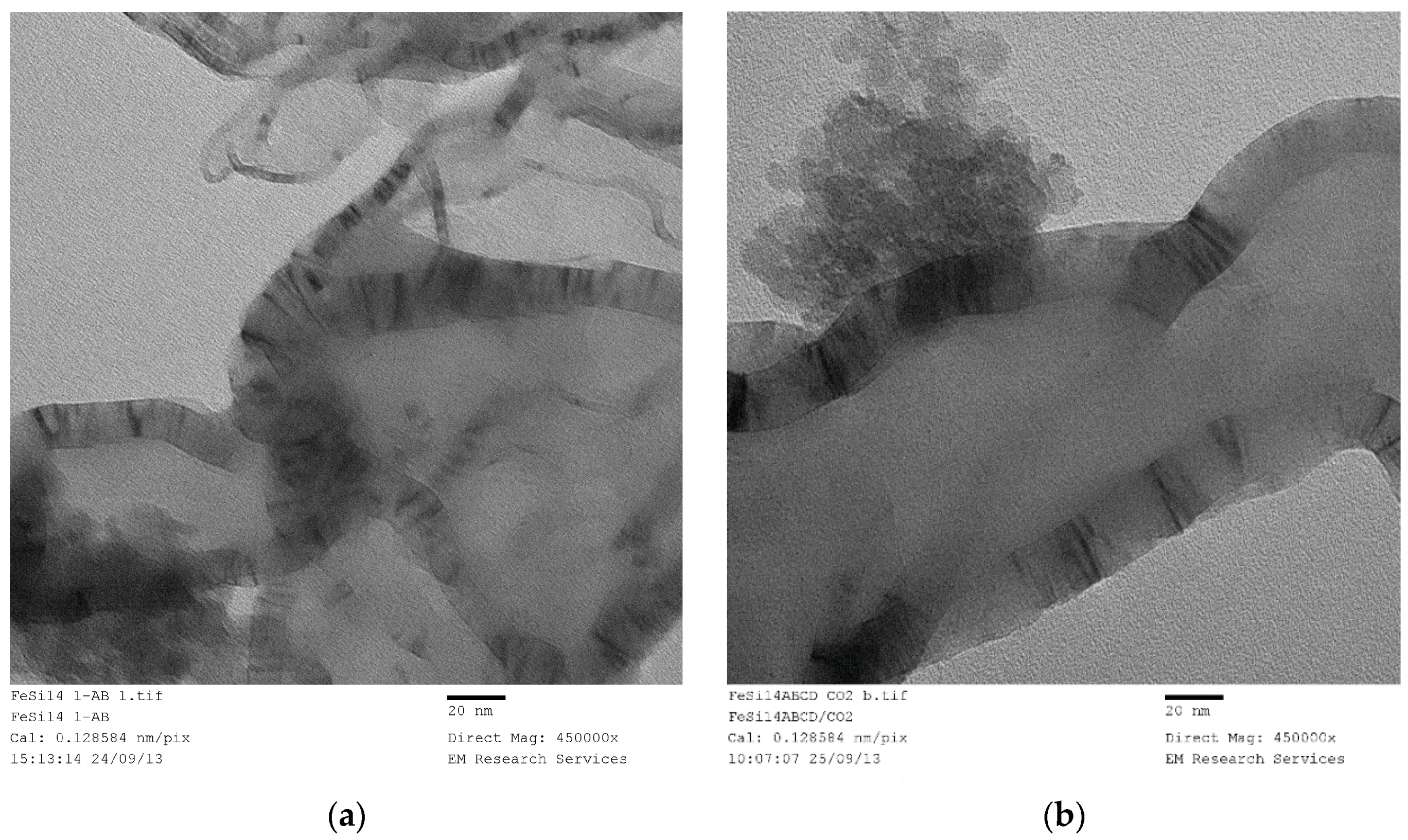 - Presence of some spherical particles with size ca. 7 nm (i.e., primary silica particles) which appear to be coated by iron