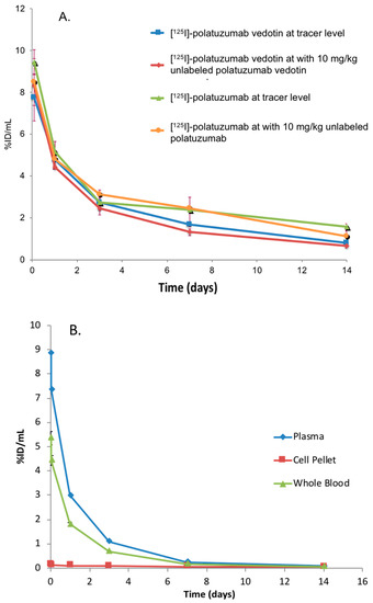 3.3. Systemic Exposure of Radiolabeled Polatuzumab Vedotin Showed a Biphasic Elimination Profile Similar to That of Radiolabeled Unconjugated Polatuzumab Antibodies in Rats
