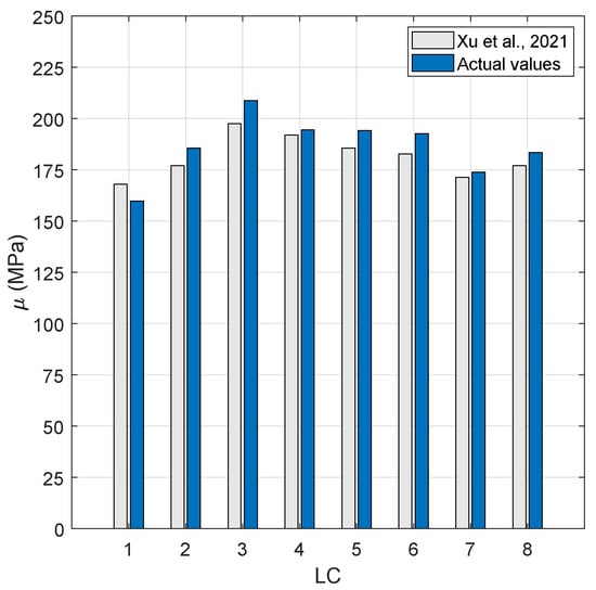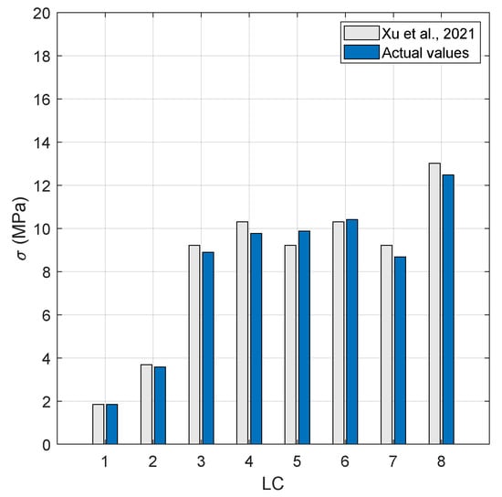 Before carrying out the benchmark study, a preliminary analysis was performed to test the effectiveness and robustness of the hydrodynamic model developed in MATLAB. Figure 4 and Figure 5 provide the mean values, and the standard deviations, of the stress process in the mooring line #1, obtained by the numerical model, currently developed in MATLAB, and by the numerical simulations performed by Xu et al. [] by the commercial code SIMA []. The SIMA software, currently licensed and supported by the Det Norske Veritas, is a complete tool for the simulation of marine operations from modelling to results, which include lifting of topsides and modules, offshore wind turbine installation, offshore crane operations, subsea installations, transportation and installation of TLPs and towing operations, among others. The software, widely tested and validated in the past, was recently extended to FOWTs, and it can be considered a reliable and effective mean of comparison. By the analysis of current results, it was gathered that the numerical code, developed in MATLAB allows the efficient estimation of the mean value and the standard deviation of the stress process, with errors less than 5%.