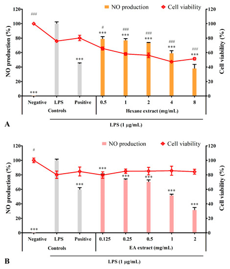 3.4. Solvent Extracts Inhibited LPS-Induced Production of NO