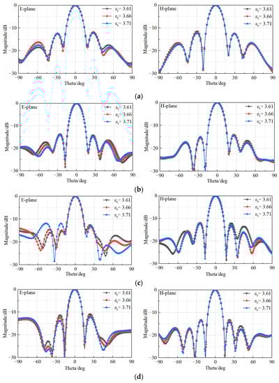 Moreover, although the power pattern could not be measured in the high–low temperature chamber, it has been simulated when changing the material property, and the results in Figure 20 confirm the expected stability of the pattern.