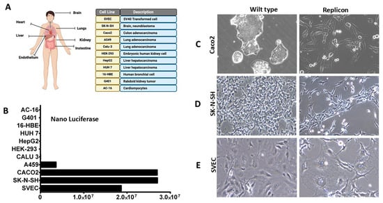 The concentration of extracellular vesicles (EVs) in the peripheral blood of COVID-19 patients is increased. Nevertheless, their potential role in the transmission of infection remains unclear. This study was performed to determine whether EVs produced by the sub-genomic replicon system developed in Baby Hamster Kidney (BHK-21) cells could transfer SARS-CoV-2 replicon RNA, leading to the establishment of a viral replication system in human cells. Purified EVs from the SARS-CoV-2 sub-genomic replicon cell line BHK-21 were cultured with a naive human cell line. The success of EV-mediated transfer of SARS-CoV-2 replicon RNA and its productive replication was assessed using G-418 selection, a luciferase assay, immunostaining, and Western blot. We found that the A549 cell line cultured with EVs isolated from SARS-CoV-2 BHK-21 replicon cells developed G-418-resistant cell colonies. SARS-COV-2 RNA replication in A549 cells was confirmed by nano luciferase, Nsp1 protein. SARS-CoV-2 RNA replication causes massive morphological changes. Treatment of cells with the FDA-approved Paxlovid demonstrated a dose-dependent inhibition of viral replication. We isolated two human epithelial cell lines (gastrointestinal and neuroblastoma) and one vascular endothelial cell line that stably support high-level replication of SARS-CoV-2 sub-genomic RNA. Viral elimination did not revert the abnormal cellular shape, vesicle accumulation, syncytia formation, or EV release. Our study’s findings highlight the potential implications of EV-mediated transfer of replicon RNA to permissive cells. The replicon model is a valuable tool for studying virus-induced reversible and irreversible cellular reprogramming, as well as for testing novel therapeutic strategies for SARS-CoV-2.