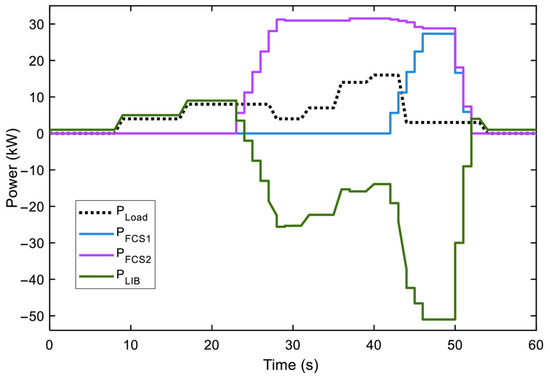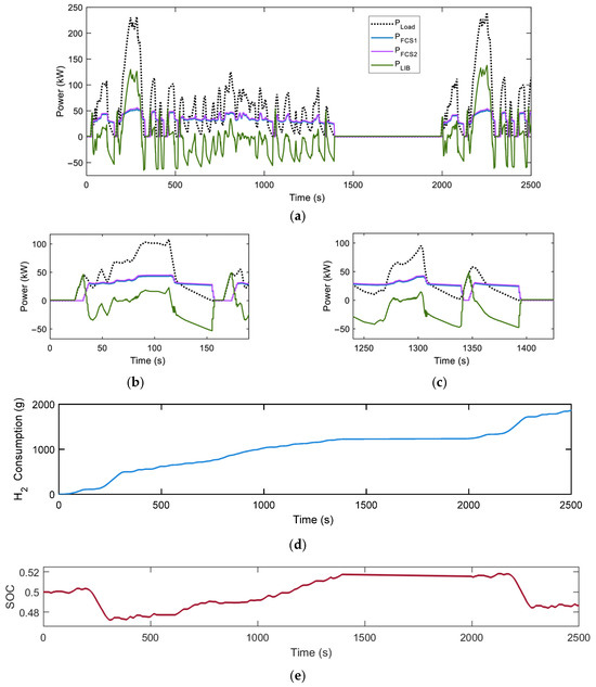 Mobile emergency power supply vehicles (MEPSVs), powered by diesel engines or lithium-ion batteries (LIBs), have become a viable tool for emergency power supply. However, diesel-powered MEPSVs generate noise and environmental pollution, while LIB-powered vehicles suffer from limited power supply duration. To overcome these limitations, a hydrogen-powered MEPSV incorporating a soft open point (SOP) was developed in this study. We analyzed widely used operating scenarios for the SOP-equipped MEPSV and determined important parameters, including vehicle body structure, load capacity, driving speed, and power generation capability for the driving motor, hydrogen fuel cell (FC) module, auxiliary LIB module, and SOP equipment. Subsequently, we constructed an energy management strategy for the model for MEPSV, which uses multiple energy sources of hydrogen fuel cells and lithium-ion batteries. Through simulations, an optimal hydrogen consumption rate in various control strategies was validated using a predefined load curve to optimize the energy consumption minimization strategy and achieve the highest efficiency.