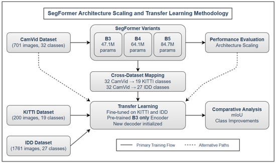 Semantic segmentation plays a pivotal role in autonomous driving, enabling pixel-level understanding of road scenes. Although transformer-based models such as SegFormer have shown exceptional performance on large datasets, their generalization to smaller and geographically diverse datasets remains underexplored. In this work, we analyze the scalability and transferability of SegFormer variants (B3, B4, B5) using CamVid as the base dataset. We perform cross-dataset transfer learning to KITTI and IDD, evaluate class-level performance, and explore explainable AI via confidence heatmaps. Our findings show that SegFormer-B5 achieves the highest accuracy ( % mIoU) on CamVid, while transfer learning from CamVid improves mIoU on KITTI by % and enhances class-specific predictions in IDD by over 70%. These results highlight the practical potential of SegFormer in real-world segmentation systems and the interpretability benefits of confidence-based visual analysis.