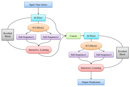 Diabetes is a metabolic disorder characterized by persistent hyperglycemia, with its incidence steadily rising worldwide. Blood glucose monitoring is a core measure in diabetes management, and continuous glucose monitoring provides more comprehensive and accurate glucose data compared to traditional fingerstick testing. To collect continuous glucose data from patients, precise glucose prediction algorithms can help them better control their blood glucose fluctuations. Therefore, by addressing the issues of low prediction accuracy, complex input features, and poor generalization performance in existing glucose prediction methods, this paper proposes a glucose prediction model based on a double-layer SCINet stack using time-series analysis methods. SCINet effectively captures multi-scale dynamic features in time-series data through recursive down-sampling and convolution operations, making it suitable for glucose prediction tasks. Experimental data were sourced from real-world continuous glucose monitoring records of patients at Yixing People’s Hospital. Model input features were optimized through variable selection and data preprocessing, with predictive performance validated on a test dataset. The results demonstrate that the proposed model outperforms existing time-series prediction models across varying prediction horizons and patient datasets, exhibiting high predictive accuracy and stability.