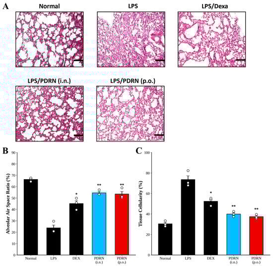 Acute lung injury (ALI) is a severe inflammatory condition with high mortality rates, necessitating the development of effective therapeutic agents. Polydeoxyribonucleotide (PDRN), a DNA-derived compound known for its tissue repair and anti-inflammatory properties, has gained attention as a potential therapeutic agent. However, the