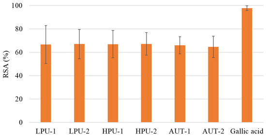 Hazelnut (Corylus avellana L.) shells, typically discarded as agro-industrial by-products, represent a potentially valuable source of bioactive polyphenolic compounds with significant antioxidant properties. This study aimed to evaluate and compare the polyphenol composition and antioxidant capacity of the kernels and shells of two hazelnut varieties, ‘Rimski’ and ‘Istarski duguljasti’. High-intensity ultrasound-assisted extraction (UAE) was applied to enhance the recovery of bioactive compounds under optimized conditions (80% ethanol, high amplitude, and 25 min treatment). The extracts were analyzed for total polyphenols, total flavonoids, total non-flavonoids, and individual phenolic compounds. Hazelnut shells exhibited significantly higher levels of total polyphenols, flavonoids, and antioxidant capacity compared to kernels. The dominant individual polyphenolic compounds identified in the shell were kaempferol, gallic acid, naringin, rutin trihydrate, quercetin-3-glucoside, chlorogenic acid, quercetin, ferulic acid, rosmarinic acid, and vanillic acid. Application of UAE notably improved extraction efficiency and overall yield compared to conventional extraction methods. The findings underscore hazelnut shells as a nutritionally and functionally valuable by-product and confirm UAE as a green, efficient extraction technique. These results provide a strong basis for developing high-value-added products for the cosmetic, pharmaceutical, and food industries, thereby supporting circular bioeconomy and sustainable chemistry principles.