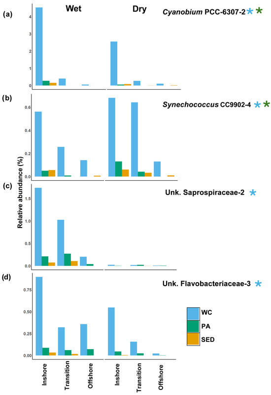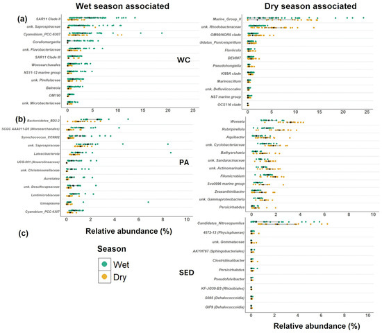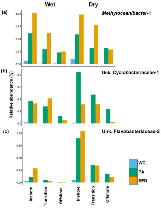 Microbial communities play a crucial role in coastal ecosystem function, yet their seasonal and spatial dynamics in response to environmental change remain underexplored in tropical and subtropical regions. This yearlong study investigated microbial composition in water, sinking particles, and sediments along an inshore–offshore