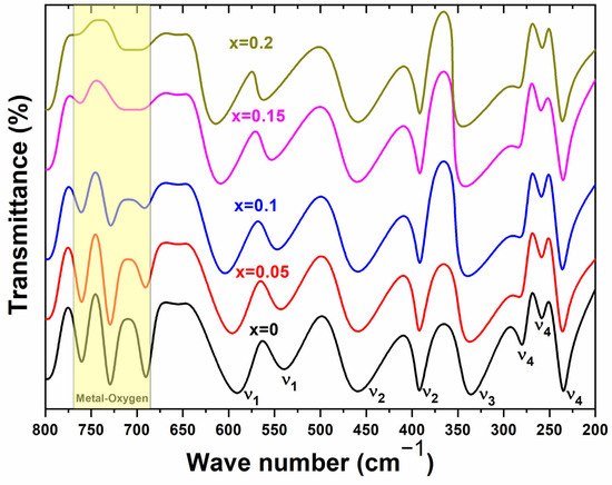 The influence of vanadium substitution on the structure, elastic, mechanical, and magnetic behavior of lithium ferrite (Li0.5+xVxFe2.5−2xO4; x = 0.00–0.2) was systematically studied. X-ray diffraction (XRD) was used to investigate the crystal structure, and infrared