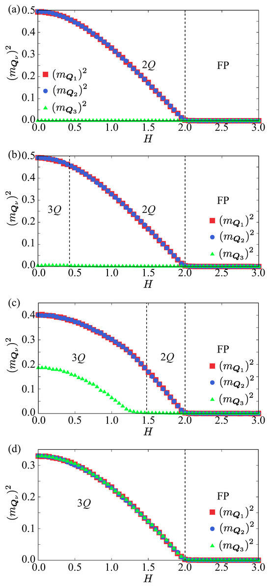 Transitions from Coplanar Double-Q to Noncoplanar Triple-Q States Induced by High-Harmonic Wave-Vector Interaction