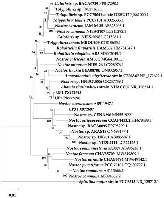The excessive use of chemical fertilizers in rice cultivation has contributed to soil degradation, creating a need for sustainable biological alternatives. This study examined the functional diversity of three indigenous nostocalean cyanobacterial strains (UP1, UP2, and UP3) isolated from forest and paddy field
