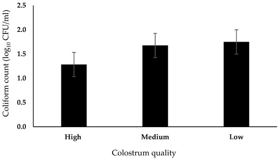 Colostrum is crucial for the survival, development, and the future productivity of newborns. In this study, we evaluated the immunological and microbiological quality of colostrum in 28 Rasa Aragonesa ewes and its relationship with offspring growth during the first 48 h postpartum. Colostrum samples were collected by hand milking immediately after parturition. Immunoglobulin concentration was assessed using Brix refractometry and the samples were categorised according to their immunoglobulin content: high (>24 Brix value), medium (19–23 Brix value), and low (<19 Brix value). Bacterial counts of aerobes and coliforms were determined with the 3M Petrifilm™ system and the weight of the lambs was recorded using a digital suspension scale. The mean aerobic count (AC) was 3.63 ± 0.69 log10 CFU/mL after 24 h of incubation and the mean coliform count (CC) was 1.59 ± 0.82 log10 CFU/mL after 24 h of incubation. Colostrum with a high immunoglobulin concentration had lower aerobic count after 48 h of incubation than that with poor immunological quality. In relation to coliform counts, similar values were found in all groups. No significant differences were observed in terms of lamb weight gain according to colostrum quality. In conclusion, the immunological quality of colostrum affected the AC determined, but it did not affect CC or early postnatal lamb weight. These findings offer preliminary insights into the usefulness of the Petrifilm™ system in microbiological quality determination of colostrum and its relationship with immunological quality determined in vitro.