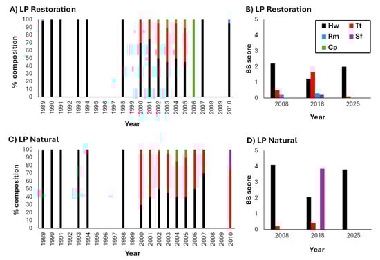 Patterns of Species Dominance in Two Coastal Restorations: Evidence of Sustained Seagrass Success over Long Time Scales