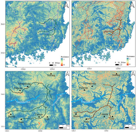 Accurate information regarding species boundaries is essential for ecological research and conservation planning. This information is particularly difficult to obtain but essential for cryptic amphibian species. The distribution and potential dispersal corridors of two cryptic salamander species, the Korean clawed (Onychodactylus koreanus