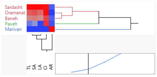 Aleppo oak (Quercus infectoria) is among the most industrially and ecologically significant oak species, valued for its medicinal properties and considerable genetic importance. Cytogenetic analysis provides critical insight into evolutionary history, interspecific relationships, and karyotypic differentiation. This study investigated the chromosomal architecture and karyotypic diversity of five natural populations of this species in western Iran (Sardasht, Oramanat, Baneh, Paveh, and Marivan) using actively dividing root meristems and a high-resolution image-based cytogenetic system. All examined cells displayed a basic chromosome number of x = 12 and a diploid condition, and chromosome lengths ranged from 0.90 to 2.12 µm. ANOVA and mean comparisons of five chromosomal parameters (Long Arm, Short Arm and Total Length, Arm Ratio, and Centromeric Index) revealed significant interpopulation differences in chromosome length and arm dimensions. All populations shared the karyotype formula 12 m and were classified into Stebbins’ Category B, indicating a moderately symmetrical, relatively primitive cytogenetic structure. Principal component analysis reduced the dataset to two major axes explaining 99.93% of the total variance, predominantly influenced by SA and TL on PC1 and by LA, AR, and CI on PC2. Hierarchical clustering grouped the populations into three distinct lineages, with Sardasht–Oramanat–Baneh showing the greatest divergence. Biplot vector patterns further clarified trait correlations, highlighting genomic structuring and potential breeding utility.
