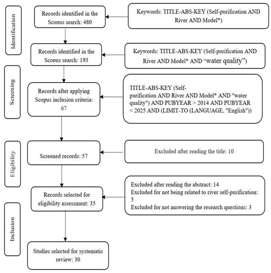 The quality of water in rivers and their self-purification capacity are critical for maintaining healthy aquatic ecosystems. This study aims to analyze and compare various mathematical models of self-purification, assessing their applicability in restoring water quality and proposing recommendations for their improved use. A systematic review of the scientific literature was conducted following PRISMA 2020 guidelines to ensure a rigorous approach. Research questions were framed using the PICO model, which includes Population, Intervention, Comparison, and Outcomes. Relevant studies published between 2015 and 2024 regarding mathematical models of river self-purification were selected. Inclusion and exclusion criteria were applied, and a critical analysis of findings was performed, highlighting methodologies and results. The results indicate that the effectiveness of self-purification models varies significantly depending on environmental and geographic characteristics. A need for more specific models and the integration of local variables was identified as a research gap that requires attention in future studies. Furthermore, recommendations were made to enhance model calibration and validation, as well as to incorporate innovative approaches for optimizing water quality management in rivers. These mathematical models are essential tools for managing river water quality, promoting public health, and contributing to the achievement of Sustainable Development Goal 6 (SDG 6).