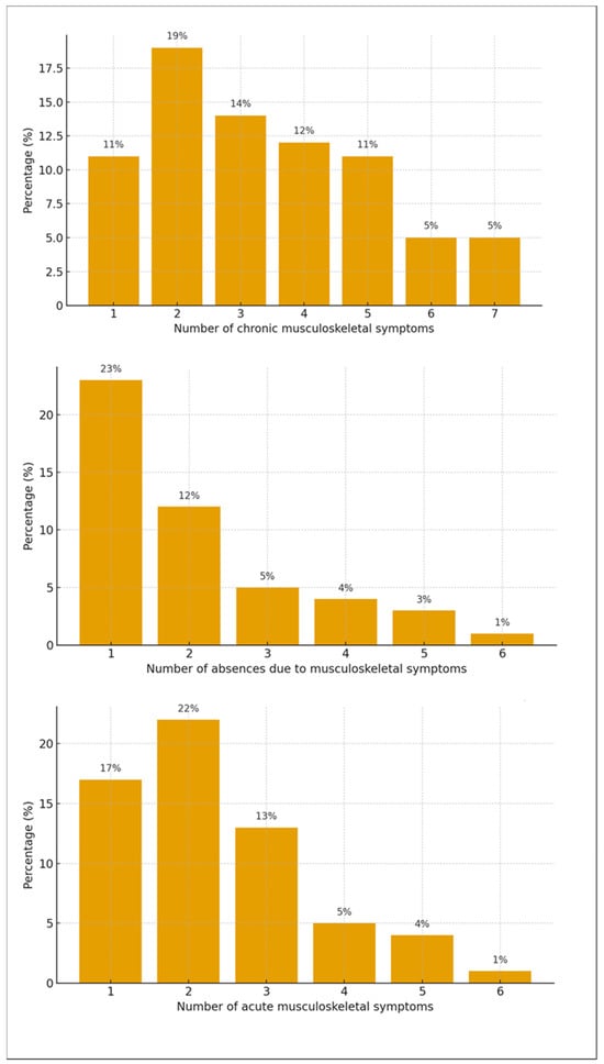 Background/Objectives: Nursing professionals were among the most affected groups during the COVID-19 pandemic, exposed to simultaneous physical demands and emotional strain. This study examined the interplay between work engagement, compassion fatigue, and musculoskeletal symptoms among frontline nurses in a Brazilian public hospital. Methods: A cross-sectional study (n = 77) was conducted between February and April 2022 using validated instruments (Work Stress Scale, ProQoL-BR, Nordic Musculoskeletal Questionnaire, and UWES-9). Descriptive and inferential analyses were performed (p ≤ 0.05). Results: Most participants did not report occupational stress (84.4%). No profiles of compassion fatigue were identified, although notable rates of burnout (26.0%) and secondary traumatic stress (23.4%) were observed. Engagement scores were very high in vigor and dedication. Musculoskeletal symptoms were prevalent, especially in the lumbar region (chronic: 60.0%). Female sex, statutory employment, and lack of physical activity were associated with a higher prevalence of symptoms and sick leave. Work engagement (vigor and overall score) showed negative correlations with absenteeism. Conclusions: The coexistence of high engagement and emotional vulnerability, in the absence of compassion fatigue, suggests that higher levels of engagement may be associated with lower occupational stress. These findings highlight the importance of integrated strategies, including ergonomic interventions, health promotion, and organizational support, to preserve the physical and mental health of frontline nursing professionals. This study provides new evidence of engagement as a potential protective factor that may mitigate physical and emotional burden among nurses in resource-limited settings.