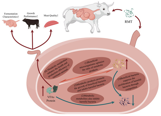 The growth and development of ruminants are closely linked to the stability and functional capacity of their rumen microbiota. Rumen microbiota transplantation (RMT), which entails the transfer of ruminal microorganisms and their metabolites from healthy donors to recipient animals, has emerged as a