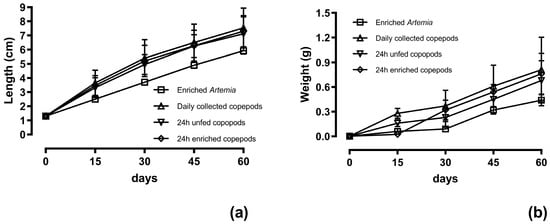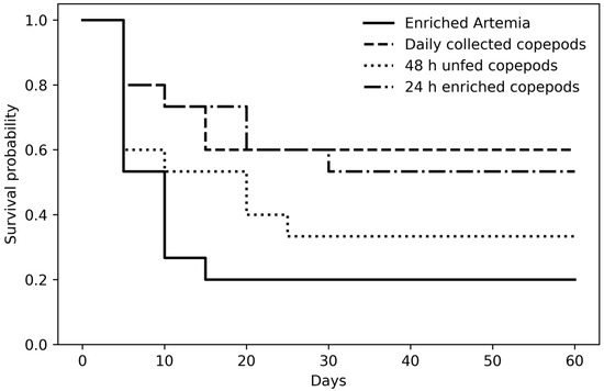 This study evaluated the effects of copepod use and copepod conditioning strategies on the growth and survival of long-snouted seahorse (Hippocampus guttulatus) juveniles from 1 to 60 days post-parturition (DPP). Four dietary treatments were tested: Artemia enriched for 24 h with